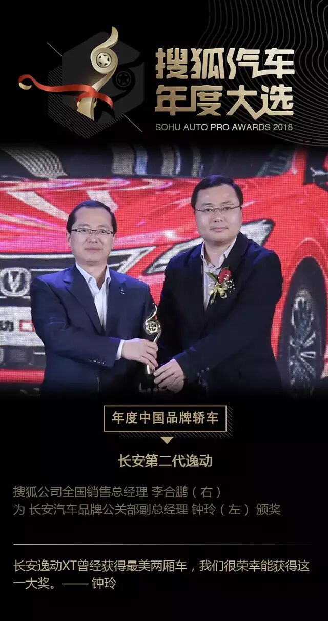 获奖理由:第二代逸动采用了最新家族化设计理念,更加时尚动感的同时引入了IN-CALL智能系统,更能满足年轻消费者的挑剔喜好。