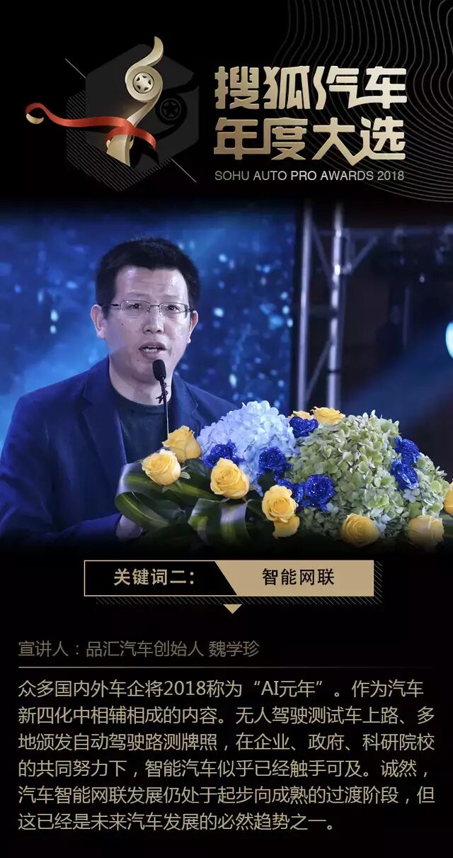 活动现场邀请一汽-大众销售有限责任公司副总经理马振山、品汇汽车创始人魏学珍、中国汽车流通协会副会长兼秘书长肖政三、亿车创始人李潮和搜狐网副总编辑、汽车事业部总经理晏成担任宣讲人,依次上台揭晓、解读他们眼中的关键词。