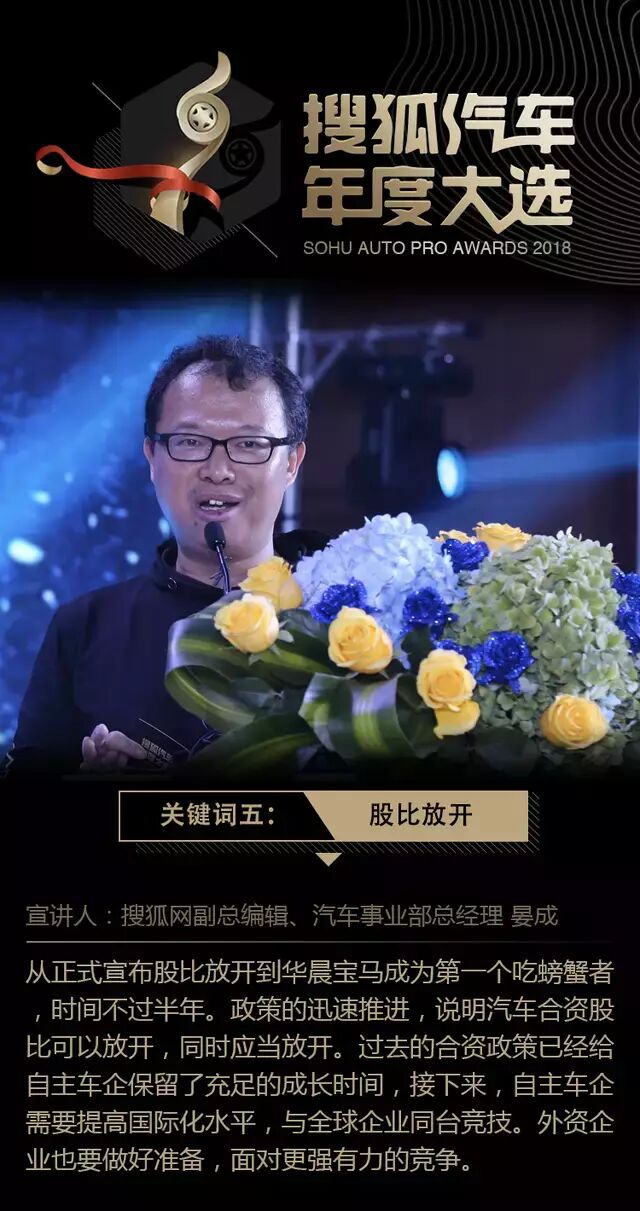 搜狐网副总编辑、汽车事业部总经理晏成表示“2018是股比放开元年”,其对产业格局的最终影响尚不明朗。汽车合资股比可以放开,同时应当放开。“一方面应感谢中国合资企业打下的基础,带来了人才、供应链、制造工艺等多方面的溢出效应,推动整个自主企业的进步;另一方面自强不息、自力更生,用自己的产品和品牌在市场中获取自己的地位。”
