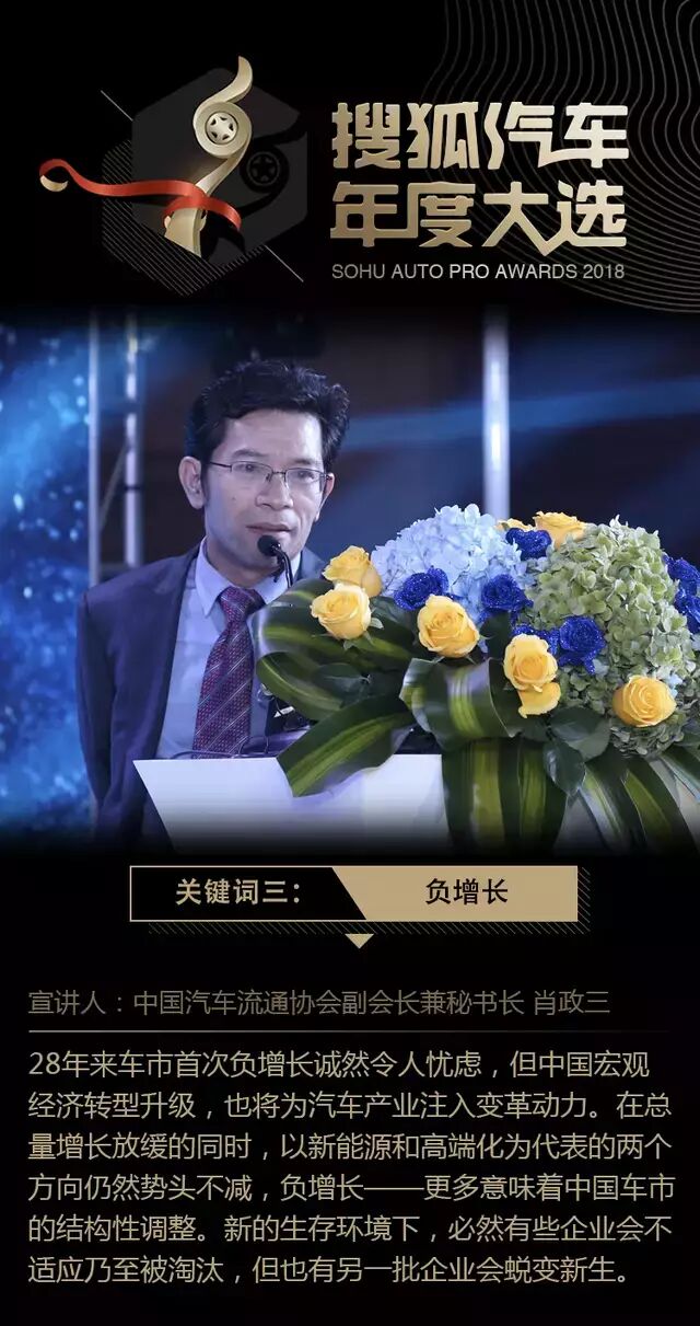 此次年度大选,搜狐汽车联合经济学者、行业专家、资深媒体大咖和车企高层,并引入财经、科技、时尚领域等跨界视角,对过去一年的行业状况进行综合盘点与深刻洞察。基于搜狐大数据研究和汽车用户观点,现场发布五大“2018年度中国车市关键词”——年轻化、智能网联、负增长、行业自律和股比放开。